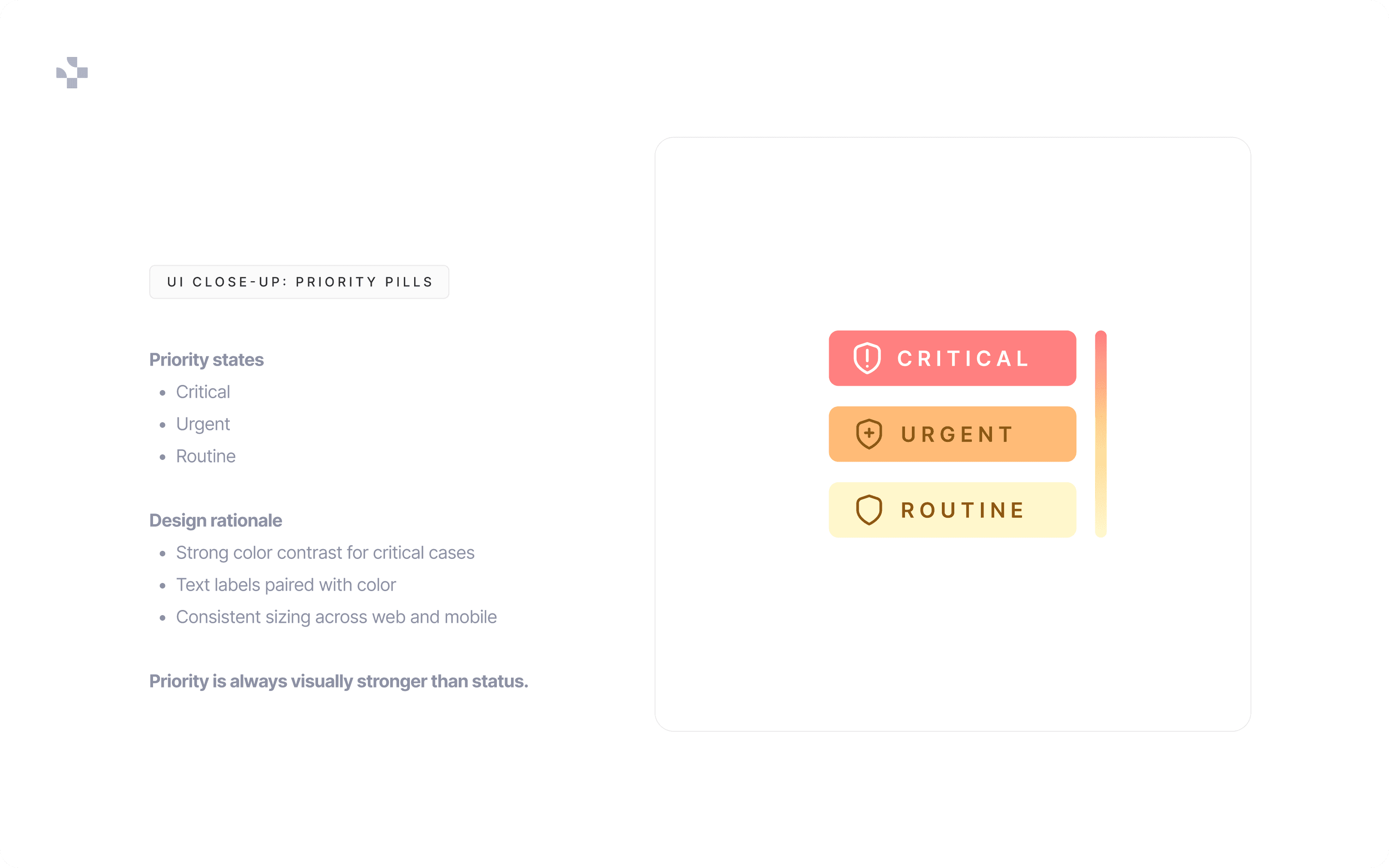 • Demonstrated importance of priority-first UI hierarchy