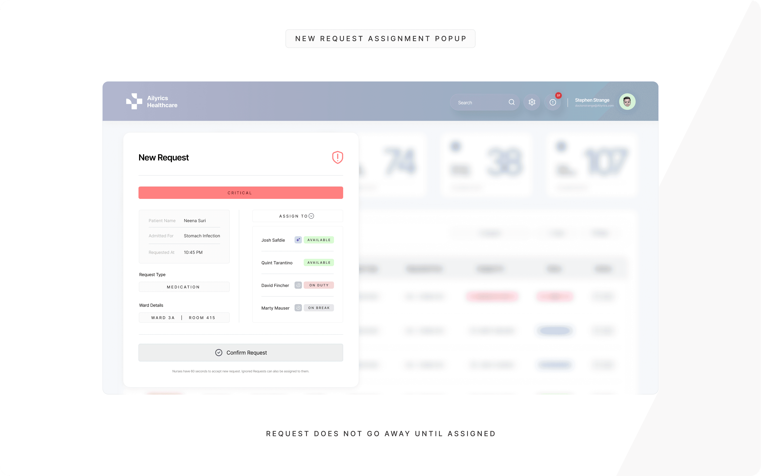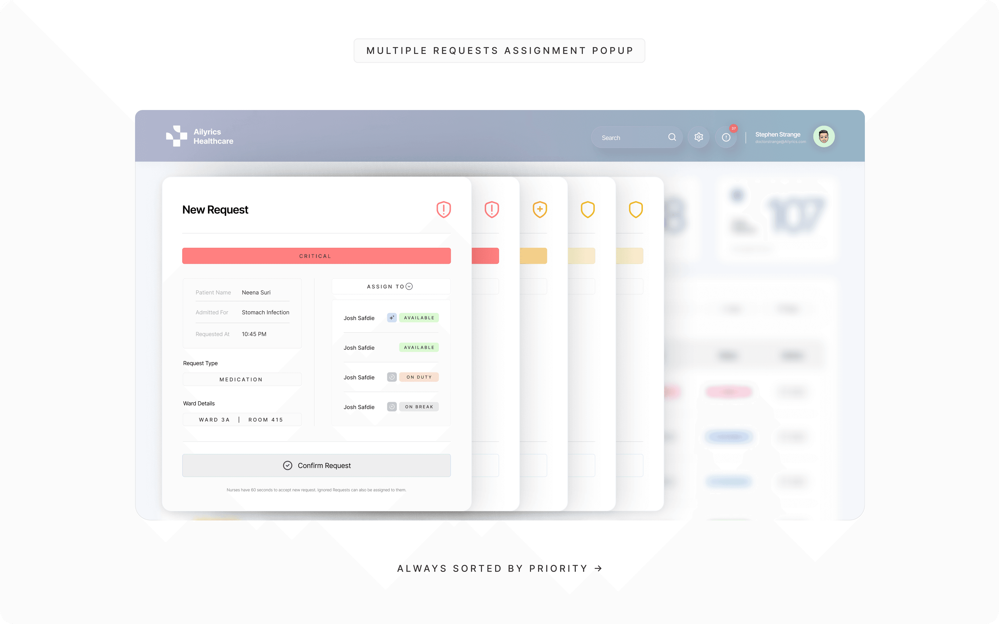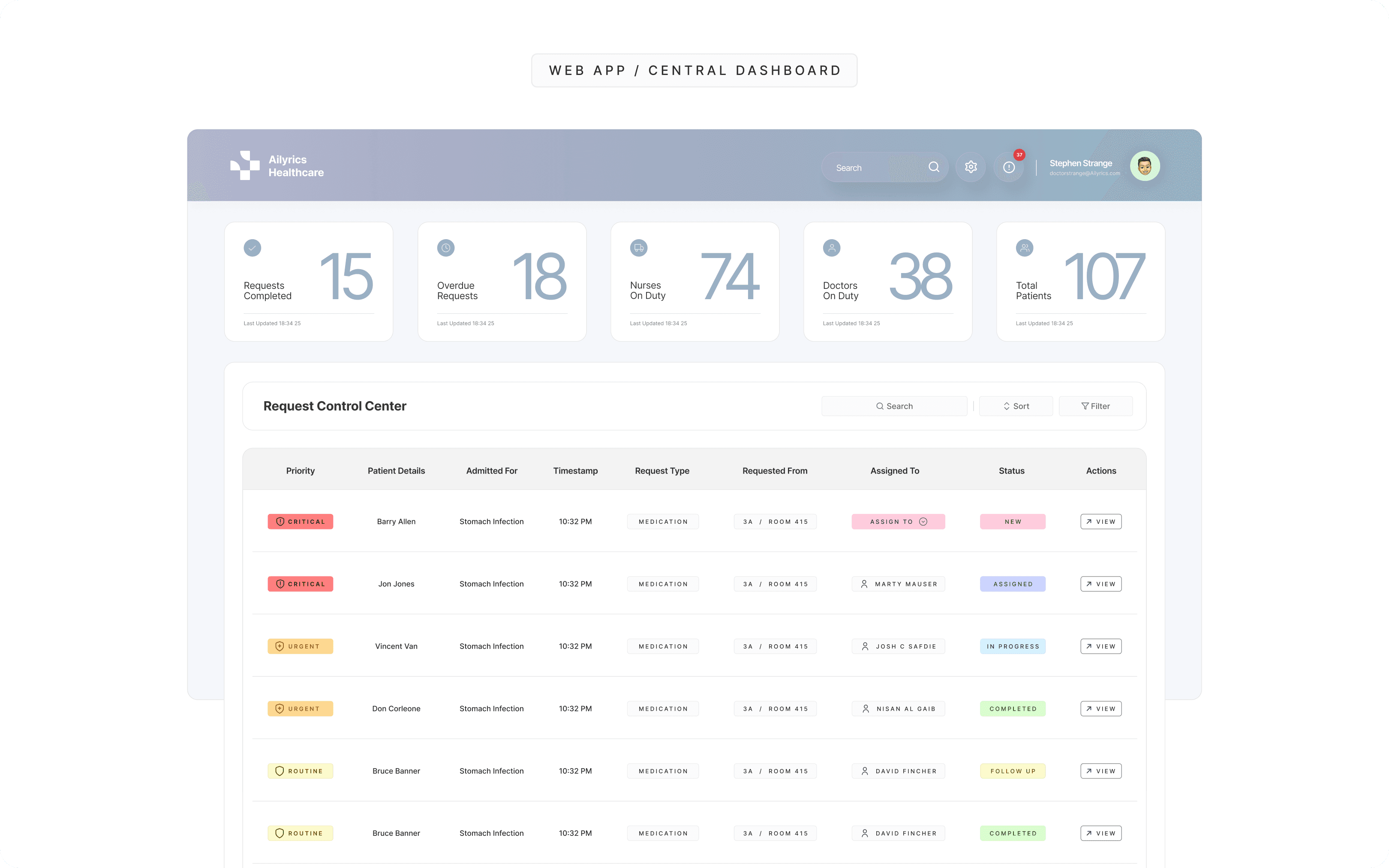 Ailyrics Healthcare is a real-time inpatient request intelligence system designed to improve coordination between nurses and central hospital control teams. The system transforms fragmented bedside call flows into a structured, priority-driven workflow shared across web and mobile platforms.