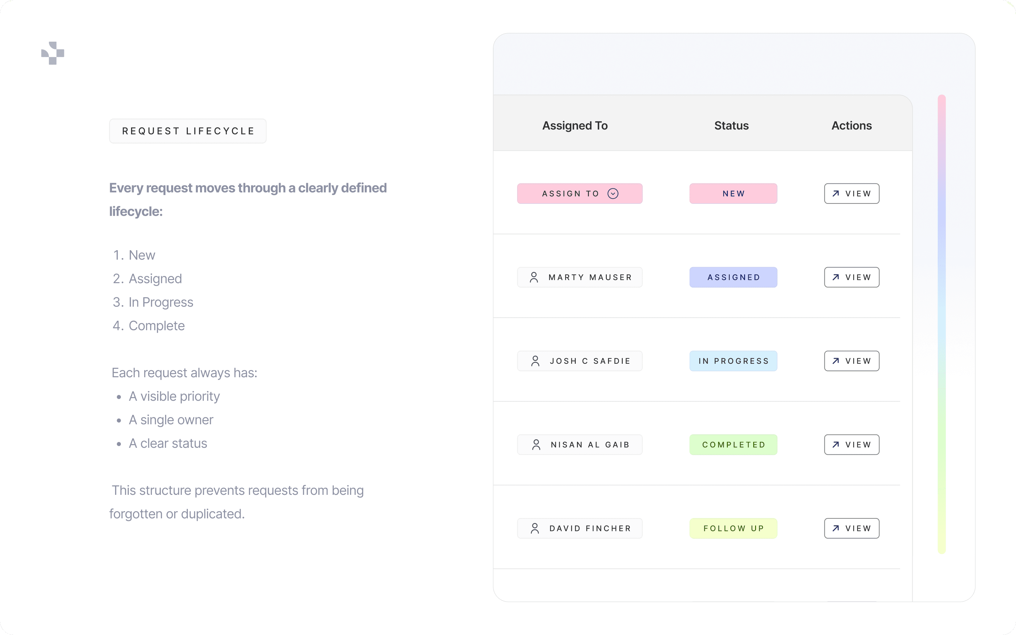 • Ensure every request has visible priority