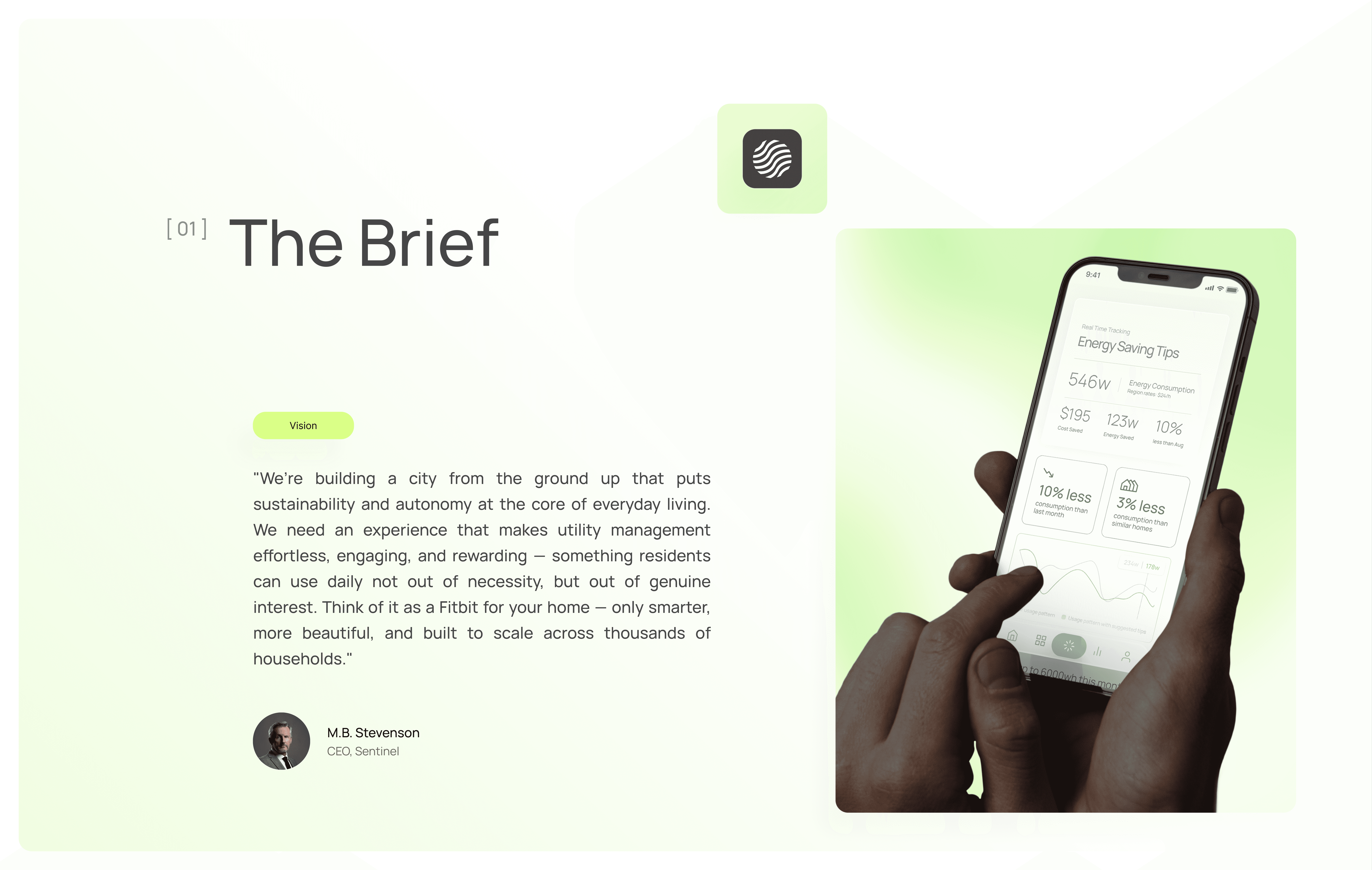 Sentinel One is a resident-facing smart city application that enables individuals to understand, manage, and optimize their electricity and water consumption in real time. The product is designed to bridge the gap between complex urban infrastructure and everyday human behavior, making sustainability visible, understandable, and actionable for residents.